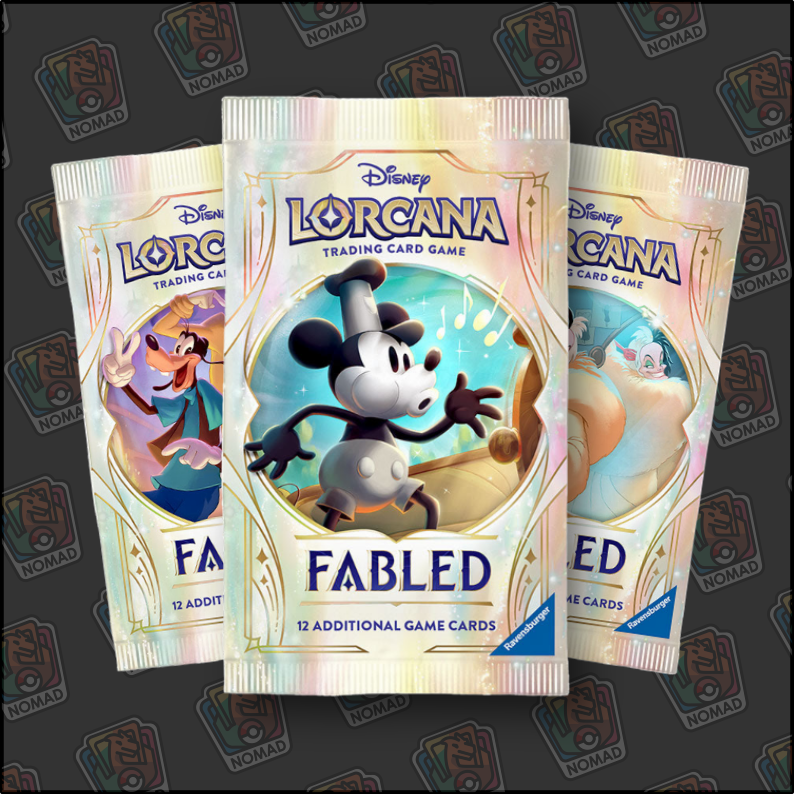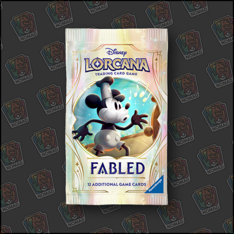 Discover stunning original artwork that captures beloved Disney characters in familiar and fantastical new forms. Each individually wrapped Booster Pack contains a total of 12 cards, including 6 Common cards, 3 Uncommon cards, 2 cards of Rare, Super Rare, or Legendary rarity, and 1 randomly selected foil card. Every card in Disney Lorcana: Fabled is available as a foil card.