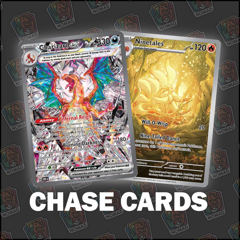 Red-hot embers illuminate the pitch-black night and sparks flare into an inferno as Charizard ex surges forth with newfound powers of darkness! The glittering Terastal phenomenon imbues some Pokémon ex like Tyranitar, Eiscue, and Vespiquen with different types than usual, while Dragonite ex and Greedent ex show mastery of their own inner strengths. Not to be outdone, Revavroom ex, Melmetal ex, and more Pokémon promise to change the course of battle in the Scarlet & Violet—Obsidian Flames expansion!