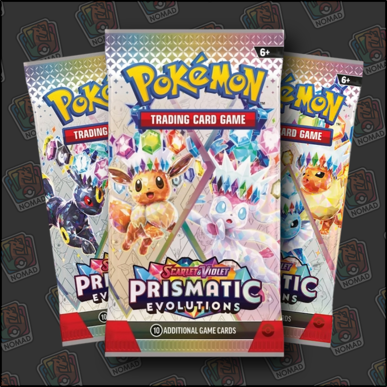 The Pokémon TCG: Scarlet & Violet—Prismatic Evolutions set features the popular Eevee and its evolutions as Tera Pokémon, along with powerful new ACE SPEC Trainer cards, Tera Pokémon ex cards, and special Illustration Rares.