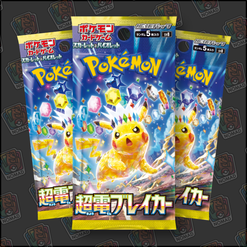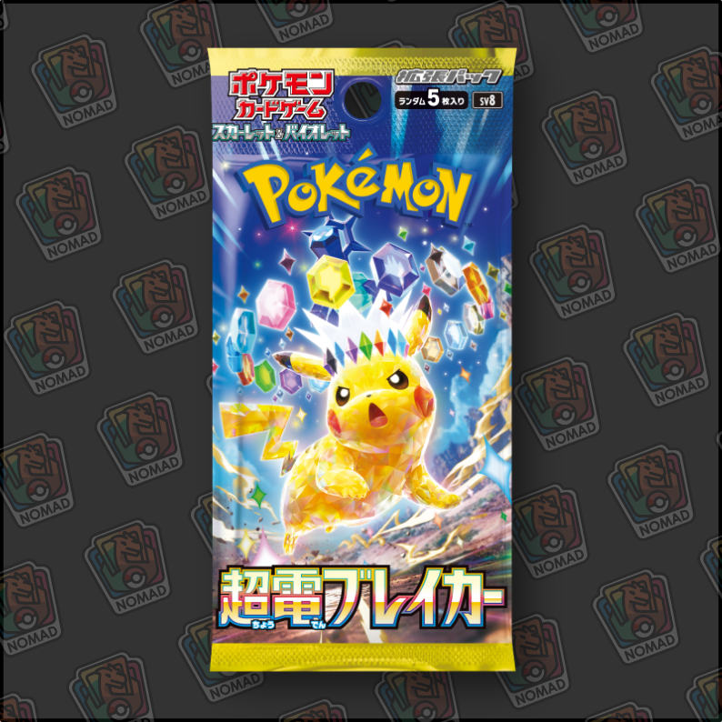 Unleash the power of Pikachu and friends with the Pokemon TCG Super Electric Breaker SV8. Each pack contains 5 Japanese Pokemon Cards, bringing even more excitement to your battles. Don't miss out on Super Electric Breaker, the Japanese counterpart to the popular English set Surging Sparks. Get yours now!